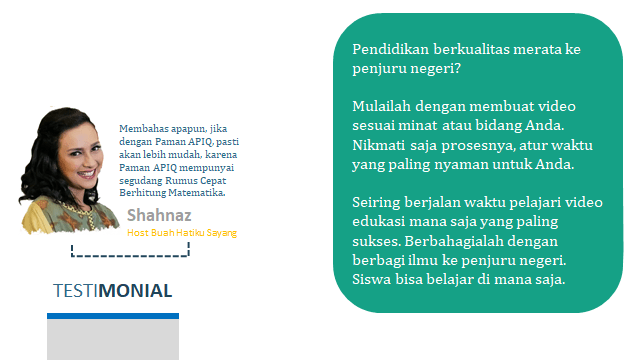 Siapa pun orangnya yang memenuhi kriteria di atas berhak sukses jadi edutuber. Anda bisa bekerja kapan saja dan di mana saja. Di saat yang sama Anda bisa belajar kapan saja di mana saja. Lebih hebat lagi edutuber adalah pilihan inverstasi terbaik Anda untuk masa depan negeri ini.