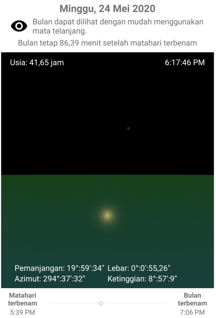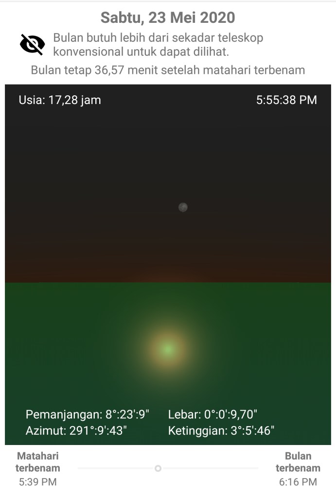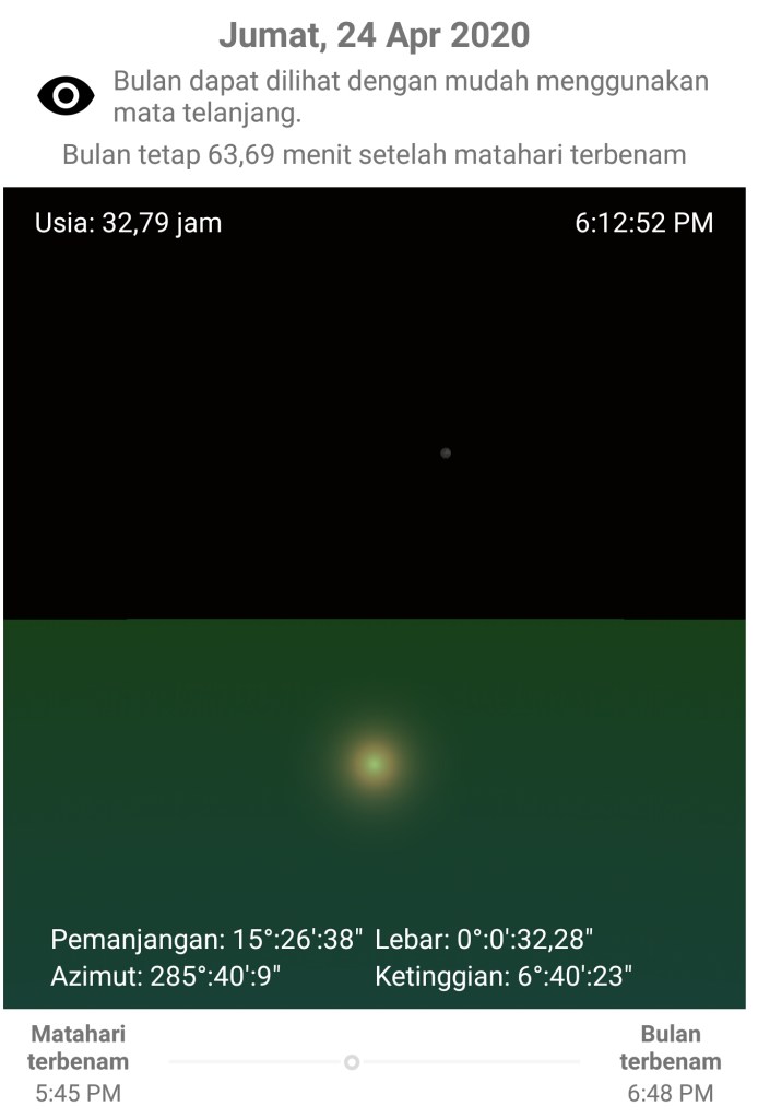 Di atas adalah 3 skenario yang mungkin terjadi untuk awal Ramadhan 2020 dan Idul Fitri di Indonesia. Saya mengambil data tinggi hilal menggunakan aplikasi dengan lokasi kota Bandung. Bila lokasi di Aceh ada peluang tinggi hilal lebih tinggi.