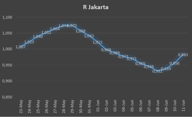 Estimasi ini berbeda dengan hasil estimasi saya. Nilai R di Jakarta 09 Juni sampai 11 Juni masih di bawah 1. Tepatnya bisa kita lihat di gambar bawah ini.