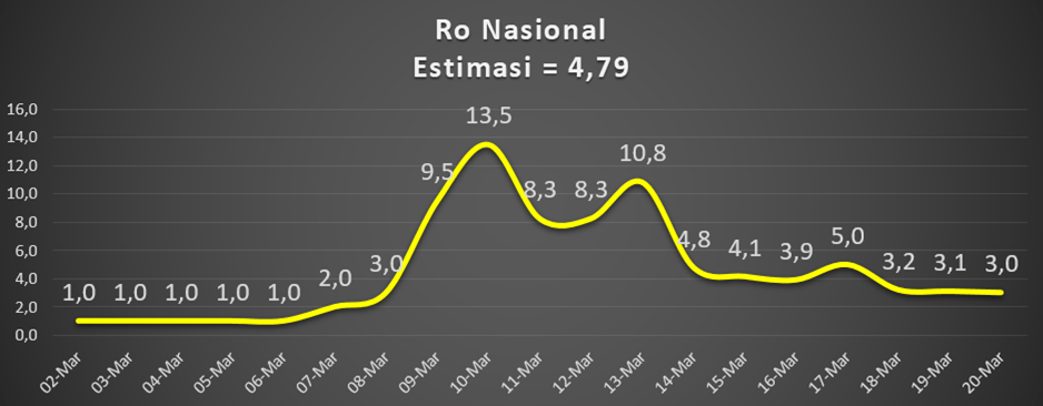 Bagian awal simulasi kita akan menghitung nilai Ro dengan data-data simulasi yang tersedia untuk negara Indonesia secara nasional. Bagian selanjutnya kita akan simulasi menghitung nilai R efektif Indonesia dan beberapa wilayah.