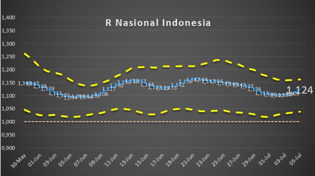 Namun nilai R nasional juga masih di atas 1. Maka Pak presiden Jokowi dan segenap rakyat Indonesia perlu lebih hati-hati menghadapi corona ini. Di saat yang sama kita juga terus menggelindingkan roda ekonomi.