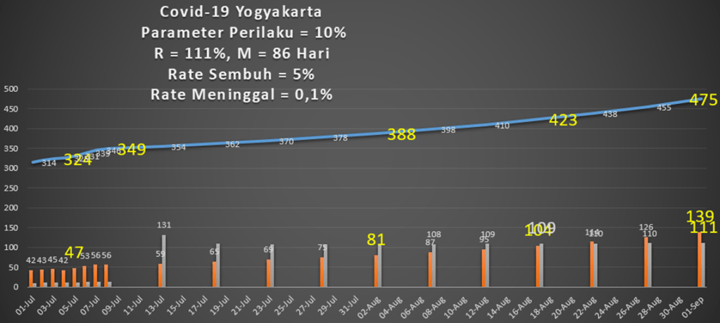 Berhasil menahan laju wabah. Tetapi total kasus masih tinggi 475 orang di 1 September 2020. Bahkan total kasus aktif masih 139 orang. Maka kita perlu kombinasi dengan meningkatkan angka kesembuhan.