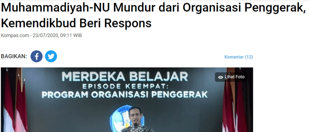 Saya menduga mereka, NU dan Muhammadiyah, tidak menolak program penggerak pendidikan – bukankah NU dan Muhammadiyah justru menjalankan program penggerak pendidikan?
