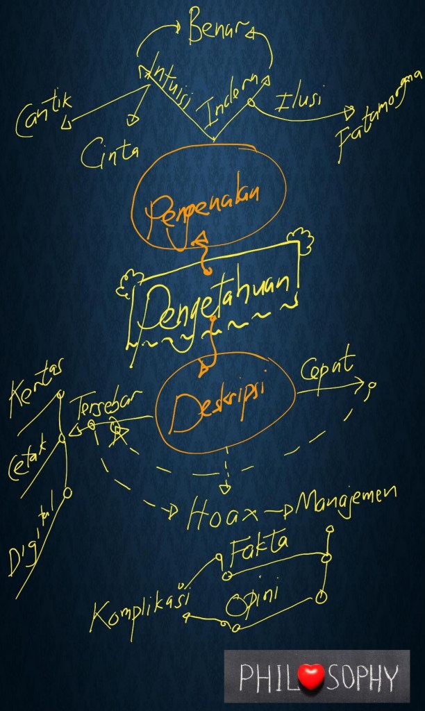 Sampai di sini, kita sudah mengenal ada dua jenis pengetahuan. Yaitu, pertama, pengetahuan pengenalan yang selalu bersifat benar. Pengetahuan yang bersumber dari melihat dengan mata kepala sendiri. Kedua, pengetahuan deskripsi, di mana, kita mengetahui sesuatu tidak secara langsung misal melalui buku. Pengetahuan deskripsi bisa saja bernilai benar tapi bisa bernilai salah atau sesat.
