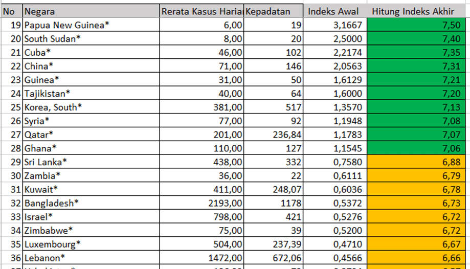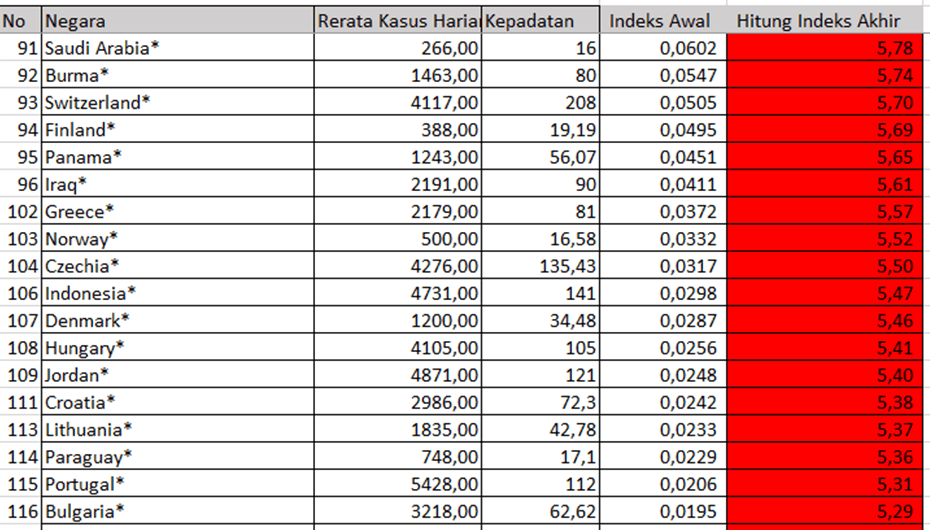 Saya, bersama tim, mencoba merumuskan formula Indeks Covid dari negara-negara di dunia. Hasil perhitungan rumus ini saya tampilkan di bagian bawah, untuk beberapa negara terpilih.