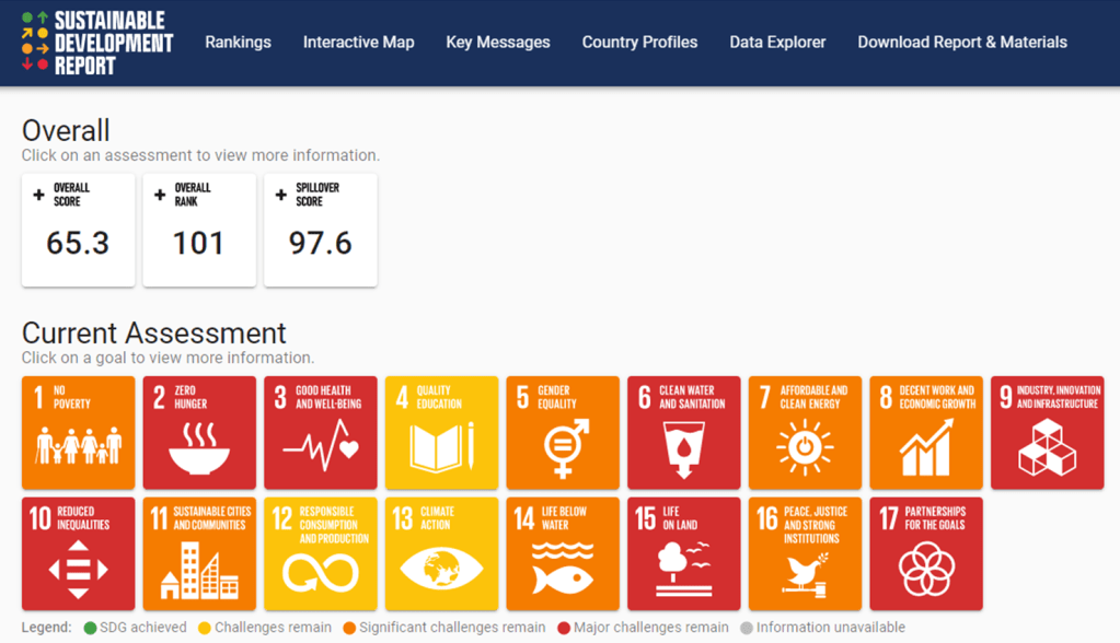 Indonesia berada pada urutan ke 101 dari 166 negara di dunia. Dari 17 SDG tidak satu pun berwarna hijau. Artinya tidak ada satu pun SDG yang berhasil dicapai oleh Indonesia. Perlu perjuangan lebih serius.