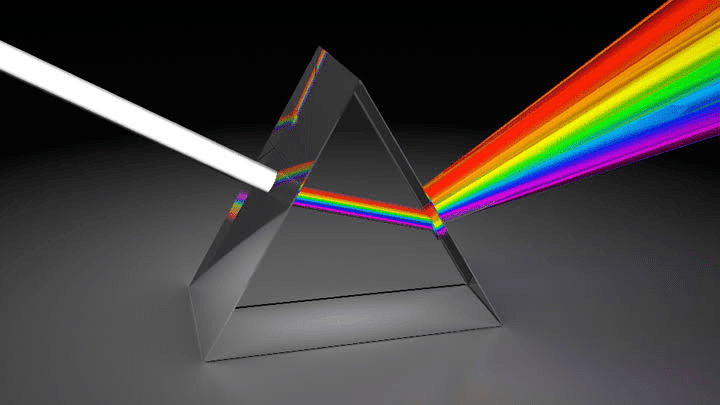 Mari kita ambil ilustrasi agar lebih jelas. Cahaya putih, bening, akan dilewatkan ke prisma. Setelah melalui prisma, cahaya dibiaskan menjadi beberapa warna, misal: (1) merah, (2) jingga, dan (3) kuning.