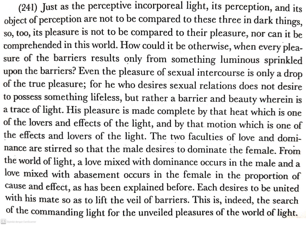 (237) Jika godaan badaniah tidak mendominasi jiwa, managing-light, maka jiwa akan merindukan cahaya suci lebih dari merindukan substansi gelap (dusky substance).