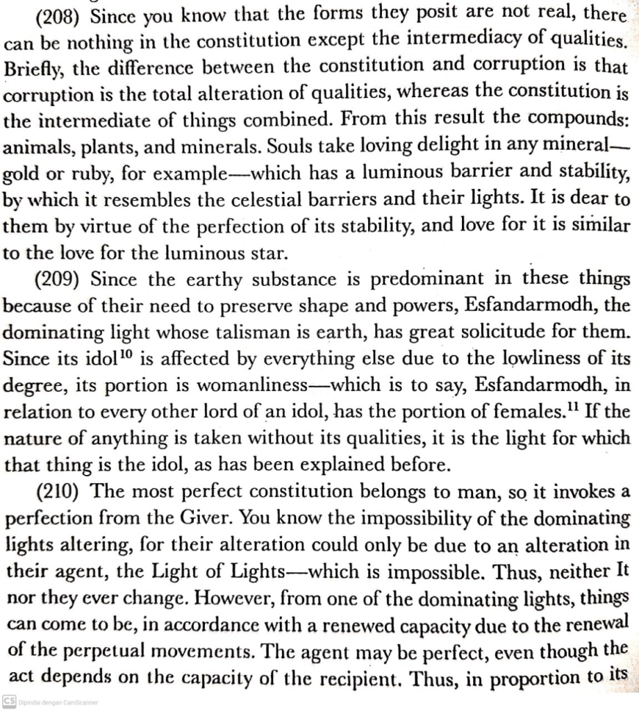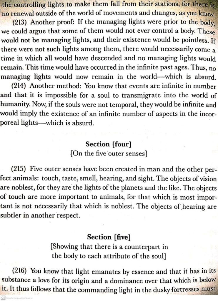 (211) This light was not existent before the body, for each individual has an essence that knows itself and those its state that are hidden from others.