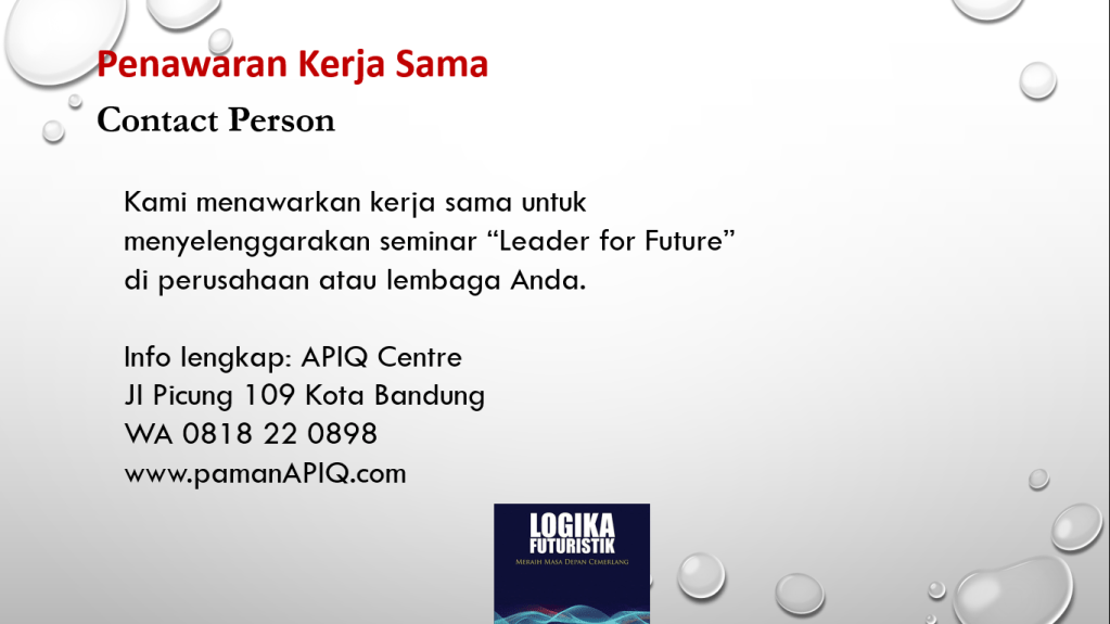 Kami menawarkan peluang kerja sama menyelenggarakan seminar “Leader for Future” di lokasi Anda.