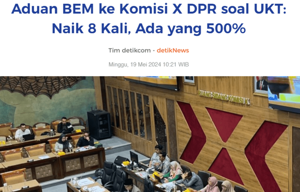 “Di Permendikbud Nomor 2 Tahun 2024 Pasal 7, PTN dapat menetapkan tarif UKT lebih dari besaran UKT pada setiap program studi diploma dan sarjana. Hari ini sangat dipertanyakan ya, bagaimana penetapan UKT itu sendiri,” katanya. (Permendikbud)