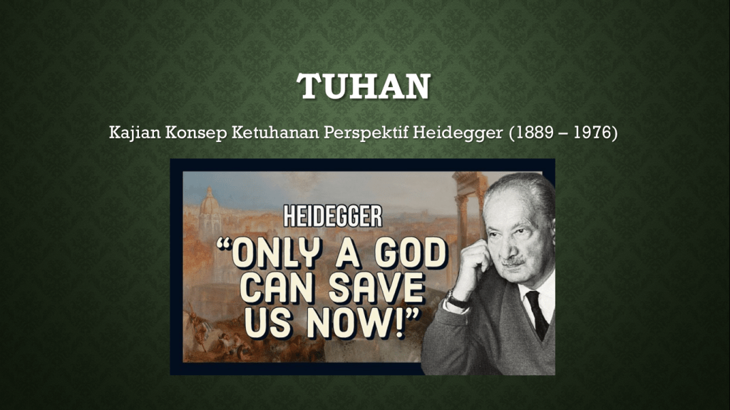 Dalam tulisan ini, kita akan membahas konsep Tuhan dari perspektif Heidegger (1889 – 1976): sejarah; etika; dan ontologi. Pertama, kita melihat bagaimana Heidegger mengembangkan konsep Tuhan sepanjang sejarah hidupnya. Kedua, untuk memahami konsep Tuhan kita perlu etika berpikir terbuka; tidak cukup logika formal saja; kita butuh sikap ikhlas. Ketiga, setelah membahas bagian pertama dan kedua, baru kita masuk pembahasan Tuhan secara ontologis.