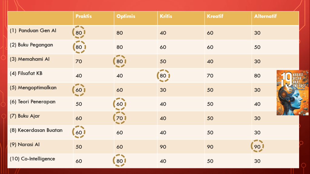 Seluruh buku AI yang kita bahas menunjukkan aspek kreativitas dengan cara masing-masing yang unik.