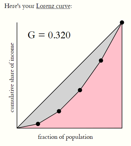 Maka kurva Lorenz setidaknya perlu terbagi menjadi 5 kelas masing-masing 20% populasi.