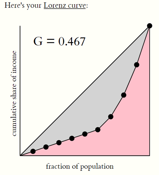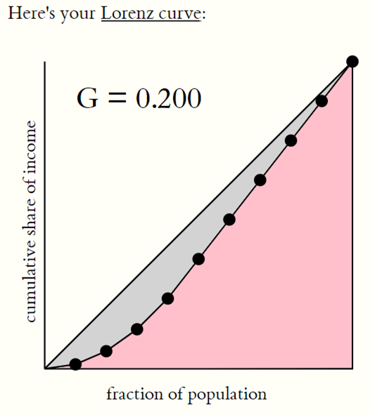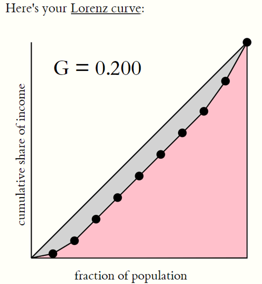 6. Ketimpangan ekonomi sulit tersembunyi dari kurva Lorenz. Awalnya saya pikir kurva Lorenz adalah prosedur cerdas untuk menampilkan distribusi kekayaan suatu populasi. Tapi kurva Lorenz lebih dari itu.