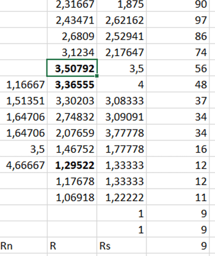 4) Confidence interval 95% dapat kita peroleh dari Ro terpilih sebagai median dari data Rn. R(high) adalah Rn yang lebih besar dari Ro dan R(low) adalah Rn yang nilainya tepat di bawah Ro. Jadi kita memilih 3 nilai Rn yaitu R(low), Ro, dan R(high).