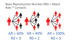 Angka R menunjukkan berapa banyak orang berikutnya yang akan ditulari oleh 1 orang yang sudah terinfeksi virus. Misal angka R = 2 menunjukkan bawah 1 orang yang terserang virus akan menulari kepada 2 orang lain. Mudah kita lihat bila R lebih dari 1 maka virus akan terus berkembang.